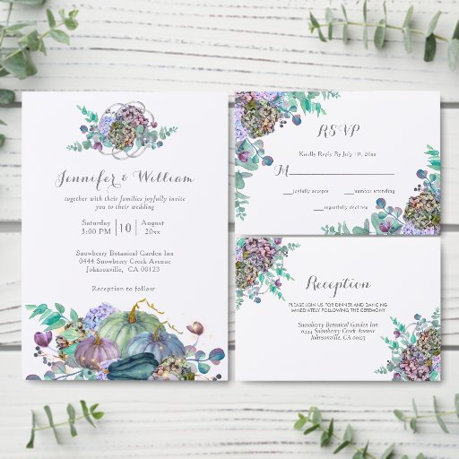 Pastel Watercolor Hydrangea Botanical Fall Floral Wedding RSVP Card.