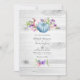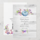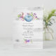 Sweet peas and pumpkins rustic wedding invite with hues of pink, purple, violet and blue and elegant handwriting typography customizable to your event specifics. The QR code on the reverse directs to your wedding site where people can learn more and rsvp.