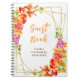 This fun and whimsical birthday party guest book features watercolor pomegranate, apples, grapes, mushrooms and foliage on a gold geometric frame. The text combines handwritten script and serif fonts for a stylish and modern look. This is perfect for a rustic autumn fall birthday party.