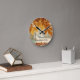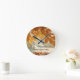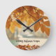 Bring the warmth and beauty of fall into your home with this charming wall clock. It features a serene background of golden-yellow fall leaves hanging gracefully over a soft-focus park scene. The example text reads “Loving Autumn Season” but it can of course be altered to suit your own needs.