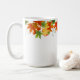 Ceramic coffee mug shown with a pretty autumn fall leaves print.