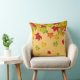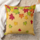 This throw pillow is shown with a pretty autumn fall leaves print on a light golden color background.