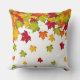 This throw pillow is shown with a pretty autumn fall leaves print on a white color background.