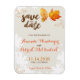 Beautiful watercolor orange and yellow leaves over a neutral background. Great for outdoor fall weddings, rustic weddings and other themed weddings.