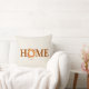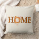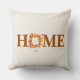 This throw pillow is shown in a off white color with a autumn fall leaves print design with a home text.