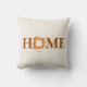This throw pillow is shown in a off white color with a autumn fall leaves print design with a home text.