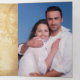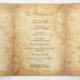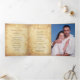 Autumn fall vintage maple leaves tri-fold wedding program with personalized photo template. Elegant tri-fold wedding program design that features a beautiful vintage illustration of fall maples leaves. It is autumn colors of burnt orange, harvest yellow, beige and brown. The background is an aged parchment paper look. You can personalize all the wording and the engagement or couple photo on the inside panel. This program has lots of room to add additional wording as well. You may have to go into the customize section to change the placement of the wording or the font sizes. There are layers for each of the different panels.