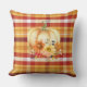 watercolor autumn pumpkin fall floral throw pillow with a plaid pattern