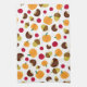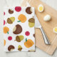 This kitchen towel features a colorful autumn harvest pattern with pumpkins, cranberries, acorns, and chestnuts on a white (customizable) background. Great for fall and Thanksgiving kitchen decor!