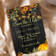 Rustic elegant fall wedding stylish save the date template card on dark brown barn wood background featuring rusty burnt orange botanical bouquets with pumpkin, foliage, and dried leaves. +++++++++++ Easy to personalize with your details! The invitation is suitable for elegant end of summer or autumn fall rustic country farmhouse outdoor backyard floral garden weddings.