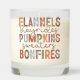 "Embrace the cozy essence of fall with our autumn-themed scented candle, featuring the phrase 'Flannels, Hayrides, Pumpkins, Sweaters, Bonfires.' This candle captures the spirit of the season with a grunge-inspired design in a warm fall color palette and a charming duo font. Perfect for creating a snug and inviting atmosphere in any room."