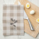 Autumn Fall Taupe Plaid Modern Foliage Monogram Kitchen Towel