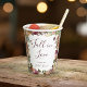 This is a rustic and elegant bridal shower paper cup, using a bohemian autumnal watercolor floral and botanical border and the text "Fall in Love". The color palette features rich fall colors such as burgundy, burnt orange, terracotta, deep green, berry and gold. This would perfectly match the other items in the collection for a beautiful, elegant and rustic fall themed bridal shower.