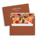 A terracotta envelope with a printed lining design of elegant autumn watercolor flowers and fall leaves is printed with your FREE return address on the back flap in chic white lettering. MATCHING items in our store.