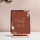 Wedding welcome with wildflower burgundy design at top right and bottom left. Background is dark terracotta rust.