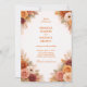 A warm and sophisticated design inspired by autumn tones, featuring rich orange, peach, and blush floral arrangements. The composition is framed by lush botanical elements that create a harmonious and balanced layout. Soft textures and elegant typography enhance the timeless, romantic aesthetic, evoking a cozy and nature-inspired atmosphere.