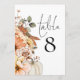 Autumn Floral Pumpkin Table Number. A beautiful autumnal botanical border along the left hand side and the table number which you can easily personalise. The same design is on the other side.
