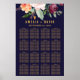 This autumn floral seating chart poster is perfect for a fall wedding. The design features a stunning bouquet of blush, orange peach, and marsala burgundy flowers with faux gold typography. This wedding poster includes enough room for up to 16 tables (160 guests). In addition to the placement of each guest, personalize this sign with the names of the bride and groom and the wedding date. This seating chart can be used for a wedding reception or any special event.