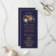 This autumn floral wedding program is perfect for a fall wedding. The design features a stunning bouquet of blush, orange peach, and marsala burgundy flowers with faux gold foil typography. Include the name of the bride and groom, the wedding date and location, thank you message, order of service, bridal party and an optional "in loving memory" memorial.