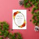 Autumn red, orange and gold florals bordering gold circle frame with eucalyptus and botanical greenery for a fall event