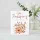 Send your loved ones Happy Thanksgiving greetings with this design of a beautiful bouquet of autumnal flowers and foliage in shades of orange and brown at the bottom, and stylish set script, Happy Thanksgiving at the top. Easily personalize your names beneath. On the back you can personalize the text to your message, and you can also add your recipient's name and address if you wish. If so, add each card to your cart separately for each recipient. Otherwise you can remove the text if you prefer.