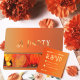 A unique enclosure card! It’s a square 4 x 4 with foil lettering. A cute design is at the the top and bottom margins, while ovals create a space for your guest to check for their attendance to your event. Keep with the fall footage design, with its vibrant colors and festive text for your party.
