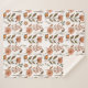 The picture shows a graceful pattern of stylized flowers in warm orange and brown tones, surrounded by green leaves and delicate twigs. The harmonious repetition of the elements radiates a quiet autumn atmosphere that provides warmth and naturalness. It creates a sense of security and aesthetic balance.