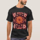 This is an Autumn Flowers T-Shirt. The floral design was created with generative art. The artwork features autumn flowers in autumn colors like gold, orange, burgundy and pink. The t-shirt shown is black. The t-shirt is unisex and can be worn by men and women. The t-shirt is made of comfortable cotton.