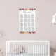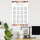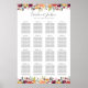 This rustic floral wedding seating chart accommodates 16 tables with up to 10 guests at each table. Pretty autumn flowers create a border at the top and bottom of the chart. Customize with the couple's names at the top, then add the wedding guests' names under each table heading.