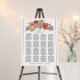 A foam board seating chart is an ideal solution to arrange seating for your wedding in an orderly and straightforward fashion. It is designed with a beautiful assortment of earthy hues and clay beige colors that adorn the top part of the board, which is framed in white for an exquisite look. The back of the board is equally as impressive with the same clay-colored and beige bouquet on a terracotta background and a white frame to create a cohesive aesthetic. This seating chart is a great way to keep your guests organized and to show off your wedding theme in a classy and stylish way.