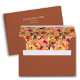 A terracotta envelope with a printed lining design of chic autumn watercolor flowers and fall leaves is also printed with your FREE return address on the back flap in white lettering. MATCHING items in our store.