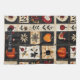 This kitchen towel features a folk art patchwork quilt style, arranged in a grid of autumnal and nature-inspired motifs. Prominent elements include orange pumpkins, stylized flowers, vine patterns, a red heart with cream outline, and a polka-dotted bird, all set within contrasting blocks of black, cream, and warm earthy tones like orange, red, and brown. The varied textures suggest appliqué, embroidery, or traditional quilting techniques, giving the design a homespun, handcrafted feel. Perfect for fall décor, rustic farmhouse style, Thanksgiving crafts, and primitive folk art lovers, this pattern blends cozy charm with seasonal elegance.