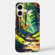 Beautiful anime-inspired phone case showing a tranquil forest clearing in autumn with sunlight filtering through colorful leaves. Perfect for scenic and cozy seasonal designs.