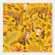 Autumn foxes on orange wallpaper