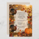 Two wild turkeys, a pumpkin, autumn fruits and nuts, along with colorful leaves, make a splendid and elegant Thanksgiving invitation.