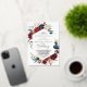 This autumn garden rose gold foil all in one wedding foil invitation card is perfect for a fall wedding. The design features stunning blush pink, red, navy and burgundy watercolor flowers, blossoms and green leaves arranged in a lively fall floral frame with luxurious rose gold foil text on the front. Save paper by including the details on the back of the wedding invitation instead of on a separate enclosure card. Include the RSVP info as well if your guest will be replying electronically (optional).