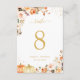 Autumn Gold Glitter Floral Wedding Table Number Card.