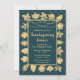 Autumn Gold Leaves Thanksgiving Dinner Teal Invitation