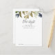 These autumn greenery date night idea cards are the perfect activity for a fall wedding reception or bridal shower. The modern rustic design features navy blue, sage green and gold leaves with sprigs of dark blue flowers. Personalize these cards with the name of the bride and groom.
