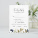 This autumn greenery menu choice RSVP card is perfect for a fall wedding. The modern rustic design features navy blue, sage green and gold leaves with sprigs of dark blue flowers. This wedding response card conveniently asks guests what meal they would like at your reception.