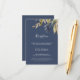 This autumn greenery navy wedding reception insert card is perfect for a fall wedding. The modern rustic design features navy blue, sage green and gold leaves with sprigs of dark blue flowers. Personalize this detail enclosure card with your reception information and include your wedding website address too!