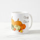 Coffee mug shown with a lovely autumn fall harvest art print. Happy Harvest