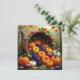 A pretty blank card with a cornucopia full of pumpkins, grapes, apples and surrounded by Fall leaves.
