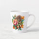 This latte size coffee mug is shown with a lovely autumn pinecone and acorns floral art print.