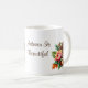 Coffee mug is shown with a lovely autumn pinecone and acorns floral art print. Autumn Is Beautiful Text.