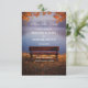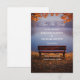 A peaceful and romantic design featuring a wooden bench by a calm lake, surrounded by warm autumn foliage. The misty background and soft lighting create a serene and intimate atmosphere. This nature-inspired composition offers a timeless and elegant way to announce a special moment with a cozy seasonal aesthetic.