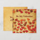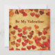 Multiple hearts, cut from fallen leaves, on a rustic, old paper background image. Customizable text reading, "Be My Valentine" also appears.