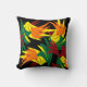 This striking decorative throw pillow features an abstract pattern of leaves in all the colors of Autumn: orange, yellow, red and green. The design is repeated on the back.