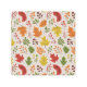 A seamless pattern featuring colorful autumn leaves and berries on a beige background.