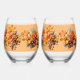 Autumn Leaves Berries Pinecones Stemless Wine Glass
